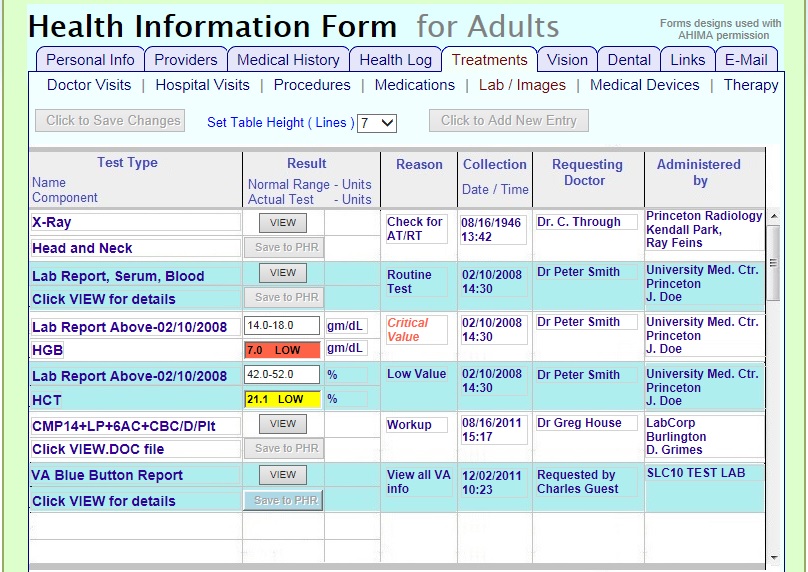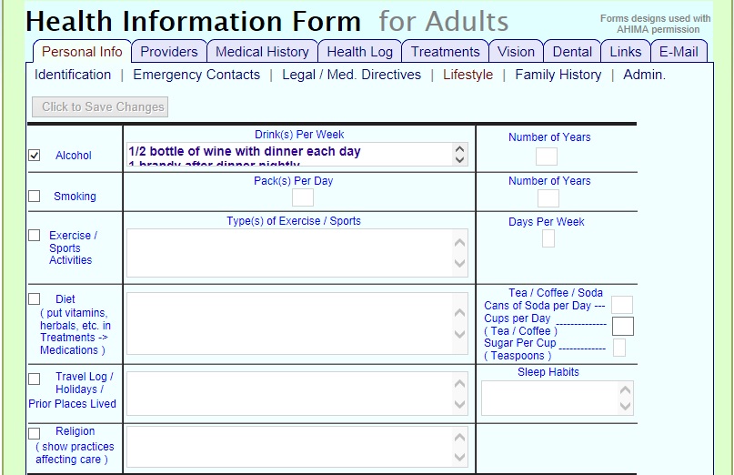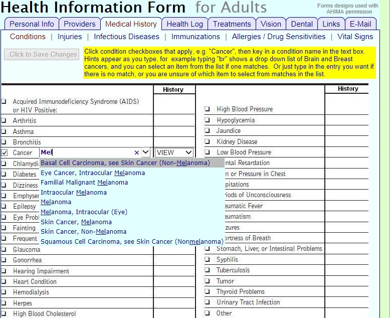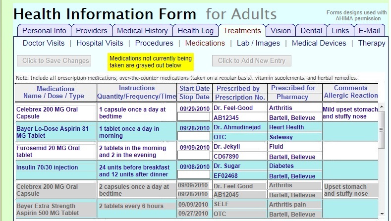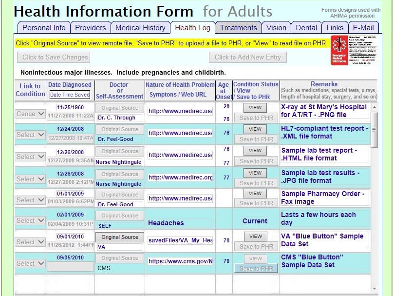 The current appearance is based on the American Health Information Management Association ( AHIMA ) set of hard-copy PHR forms ( with their permission ). And these could be modified to provide new functionality, or have a different appearance, if desired.