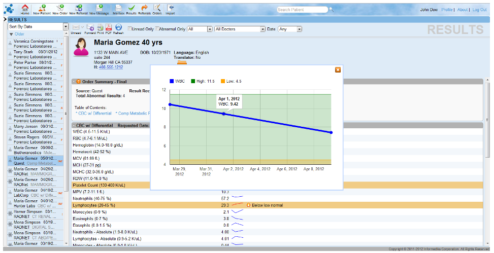 The Informedika E-Requisition Network saves doctors time and money by presenting a longitudinal view of all patient records in one pane of glass including diagnostic lab data and orders, hospital records, mHealth device feeds; enables easy, immediate referrals and information sharing. Informedika is connected to hundreds of labs, imaging centers and hospitals. We are growing through referrals between physicians.