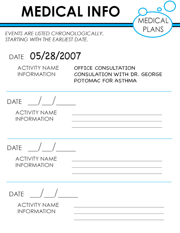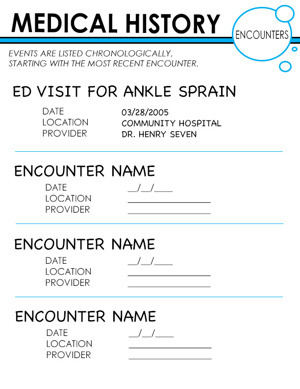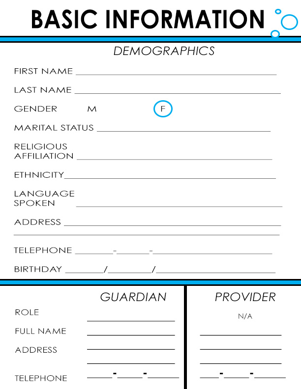 For my submission, I designed a blue and white, circle-themed Medical Informational Packet to be printed out for users. A separate page covers each field of information, making the data easy to both find and understand. The packet includes statistical charts, informational graphs, and simple forms. I predominantly aimed to create a design that would present Medical Information in a clean and organized way and give users an overall more enjoyable experience while perusing their charts.