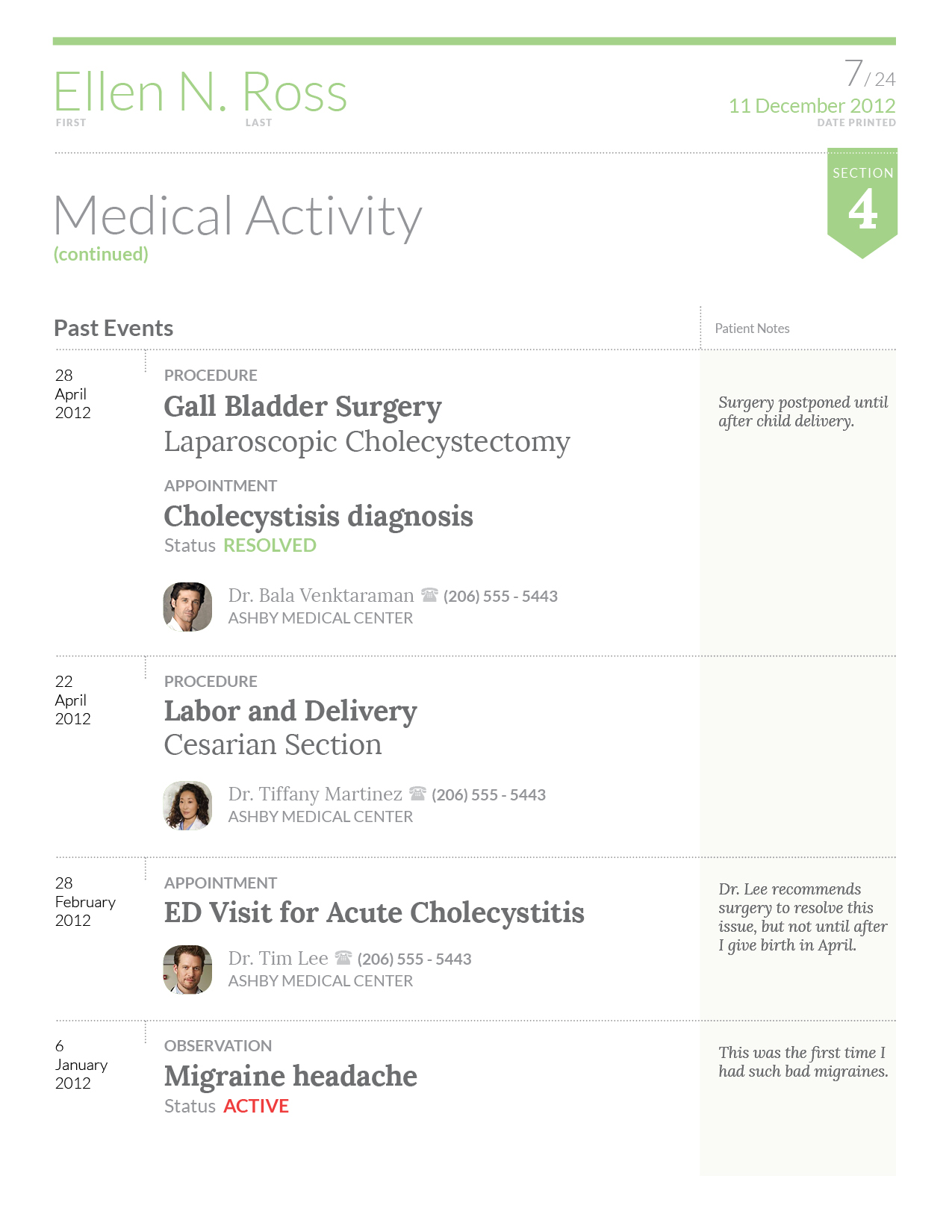 'Stay Well' is a medical record that helps patients see what matters most. This design divides the content into different sections that are organized chronologically. The inclusion of a summary page that helps highlight and bring important information to the front, but still assisting the viewer with navigating to the desired section for more information.