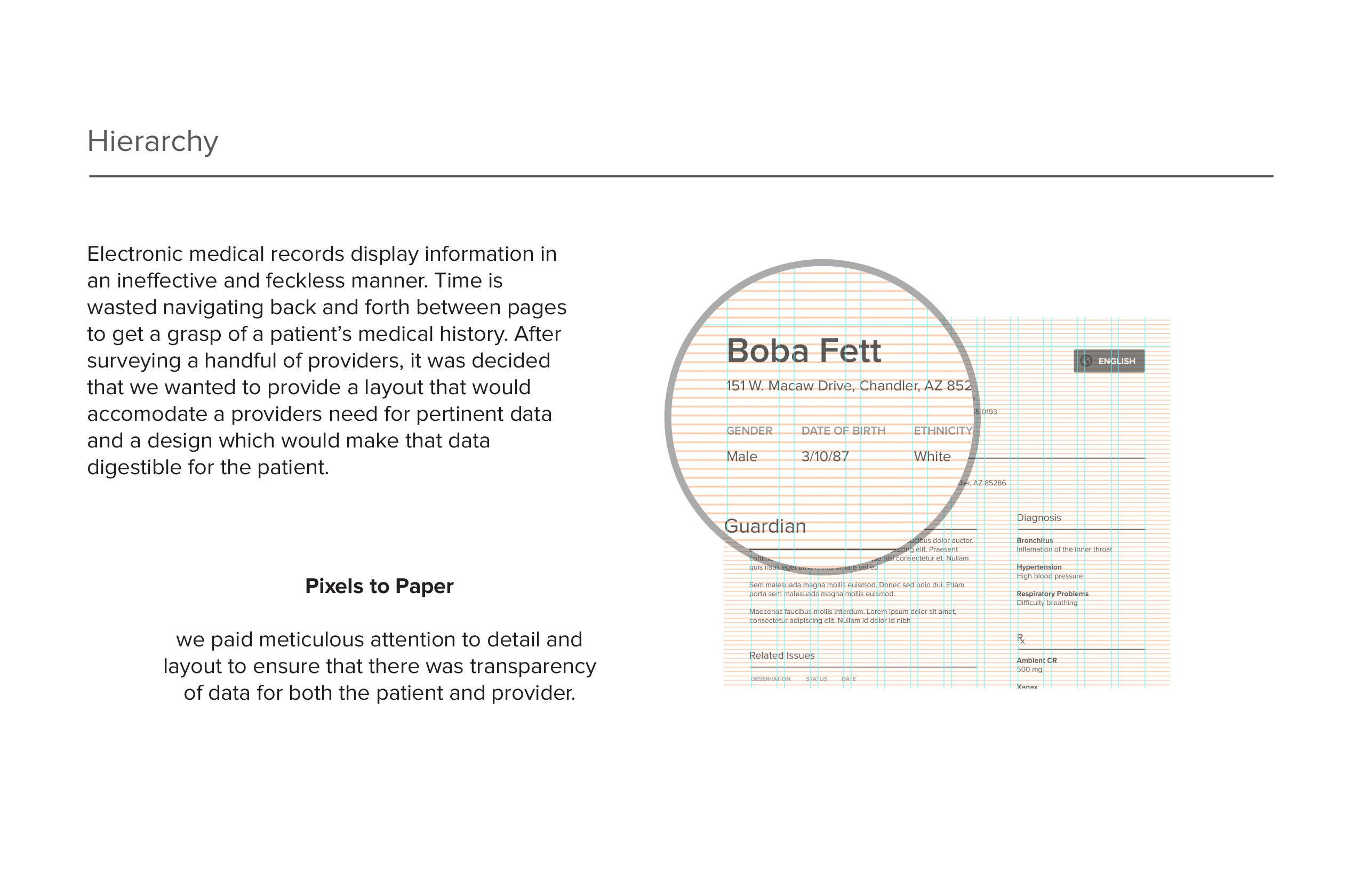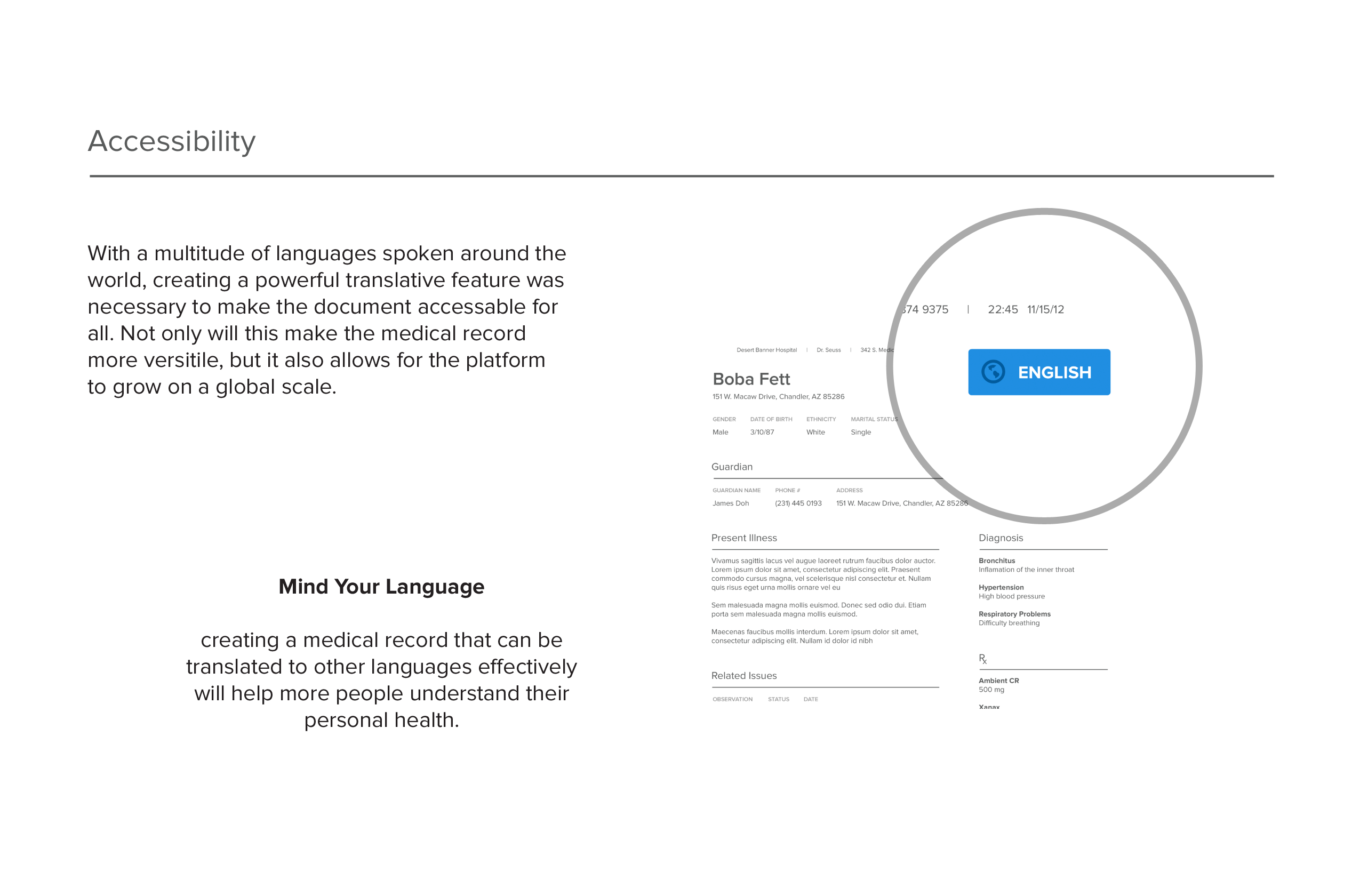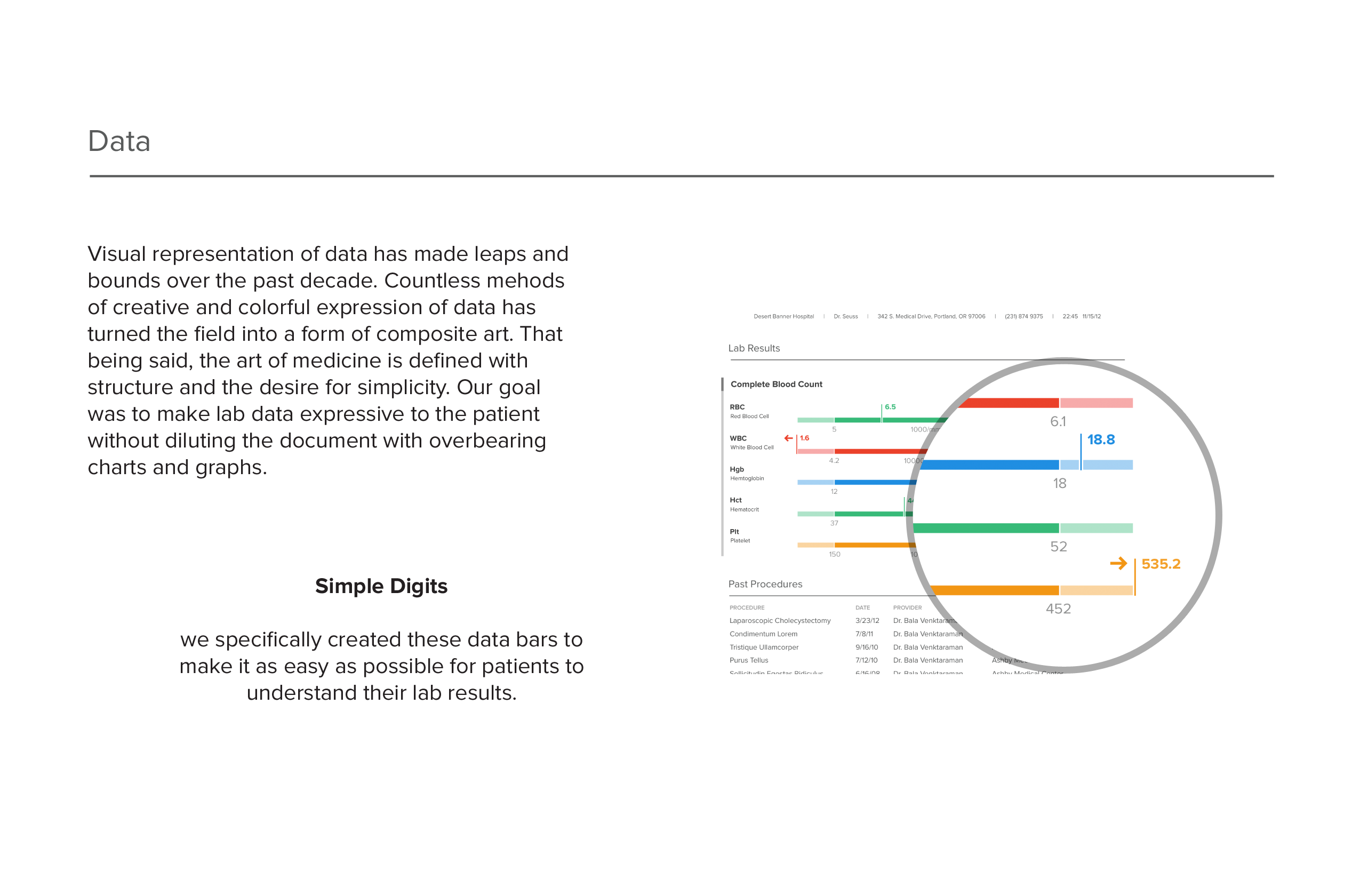 The results were staggering- showing that the providers spent twice as much time with the computer than with the patients; with most of them mentioning that they had to review the records outside of their working hours. We concluded the obvious, “None of the systems enable the critical elements of a Medical Record: ease of access, use, and transferability.” Based on these findings, we sought out to create a record of health that would make information readily available for providers while also making that information comprehensible for patients.