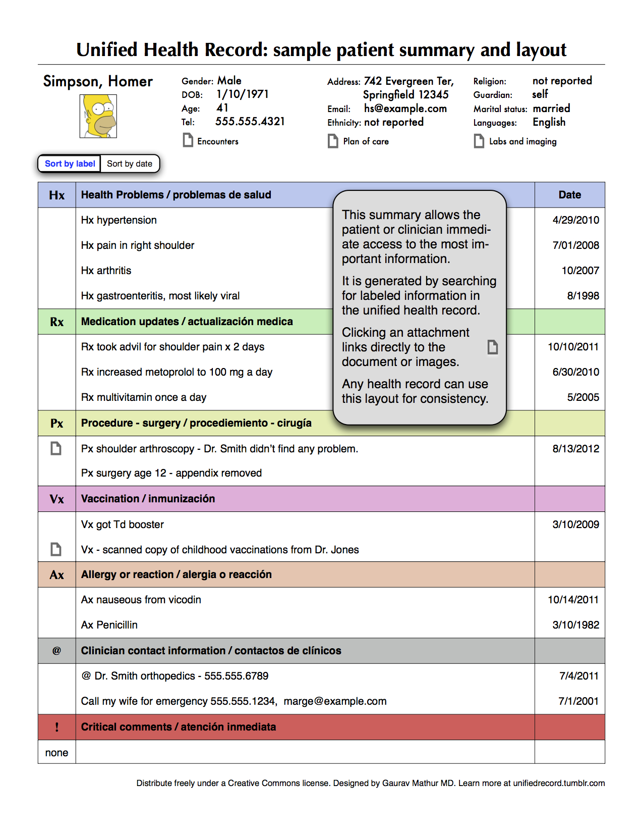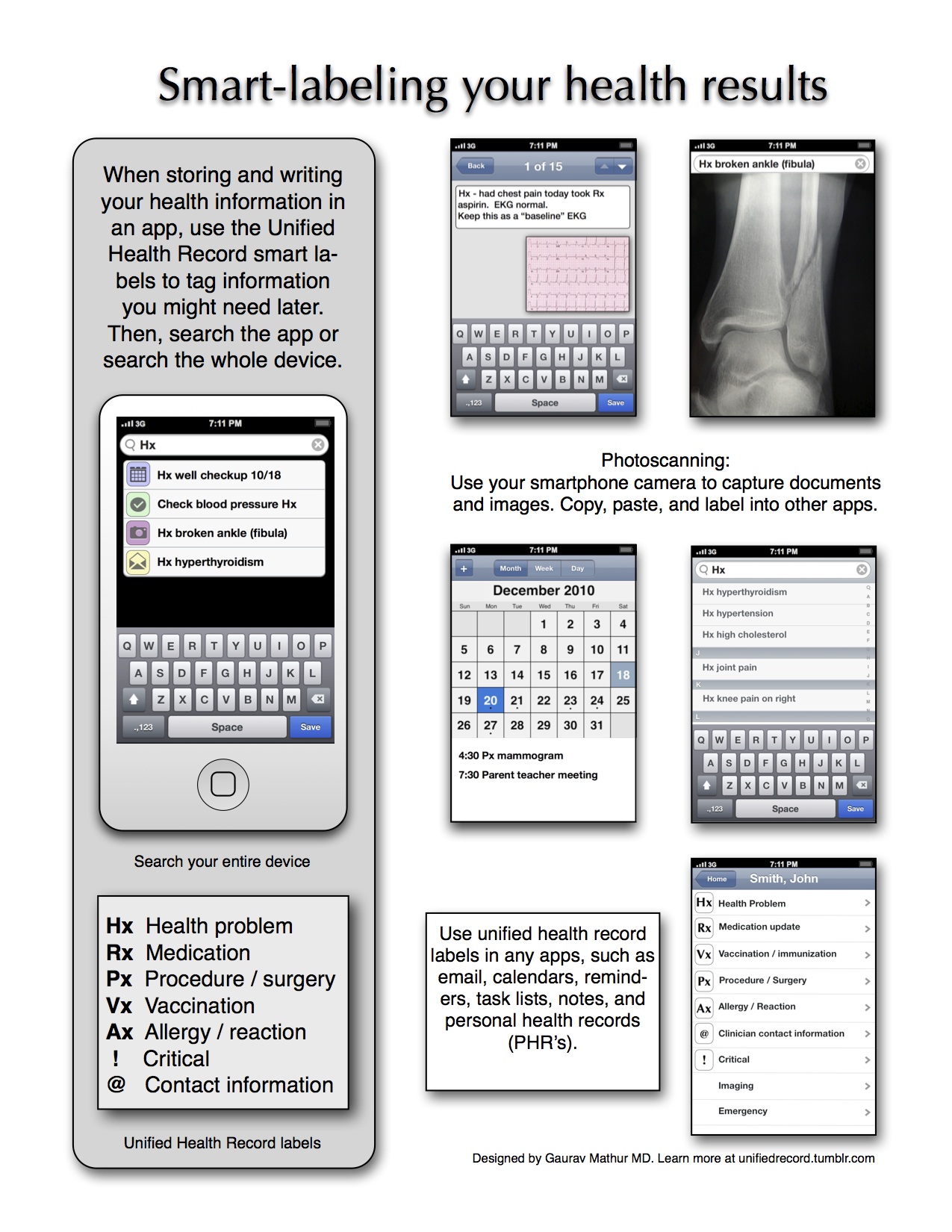 A patient’s health records are spread among multiple health care providers, resulting in fragmented care. Most patients attempt to remember it all but cannot keep up. The unified health record is a simple tool to label health information in otherwise incompatible electronic health records. It yields surprisingly comprehensive results and lays the groundwork for a fundamental shift in how medical records work.