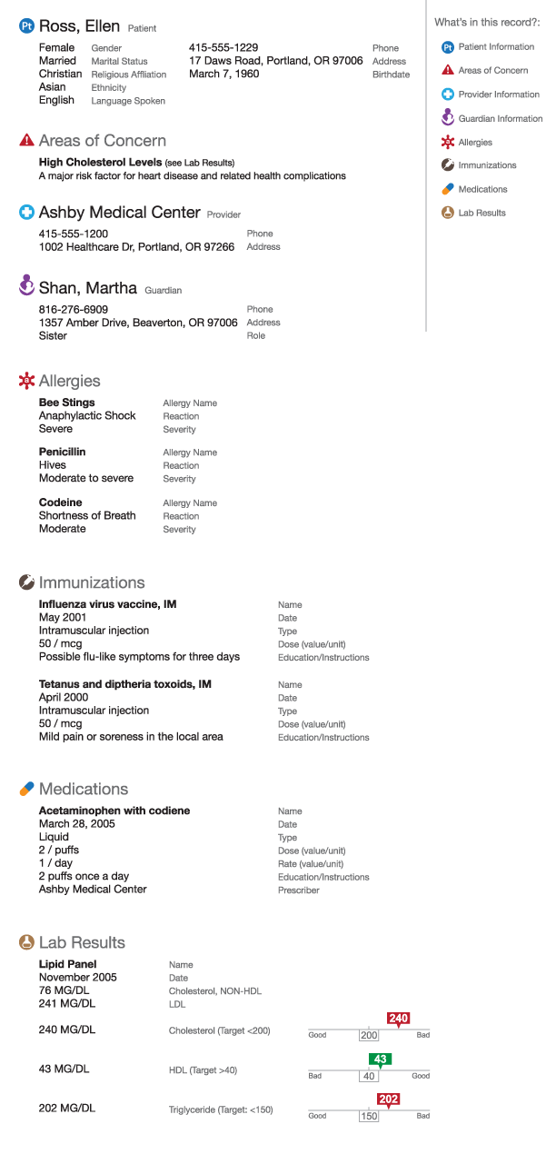 It has a visual vocabulary in the form of icons for different sections and areas of interest that also serve as navigational links in a dedicated table of contents. These icons are intended to help viewers understand and locate specific information quickly and easily.