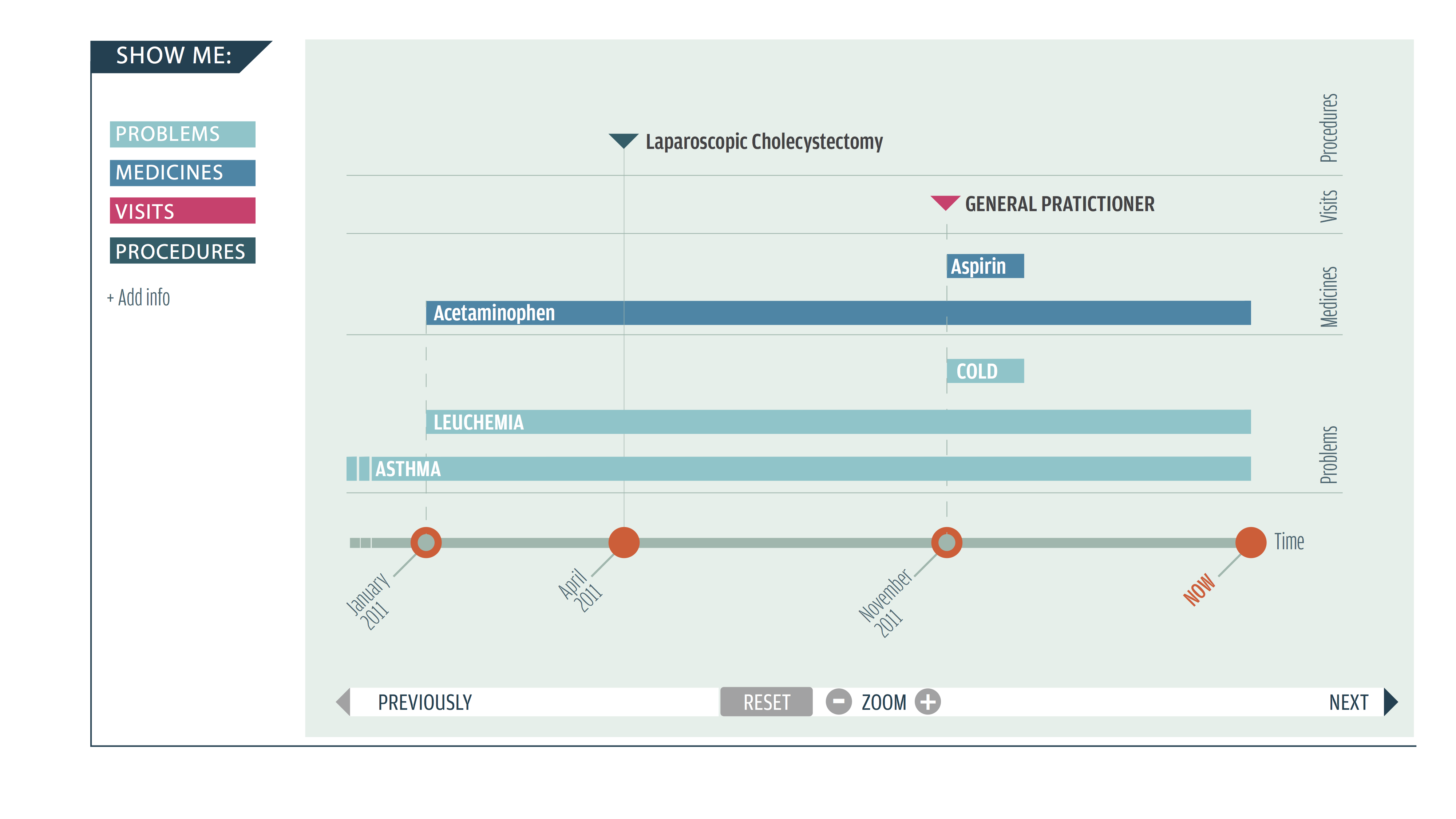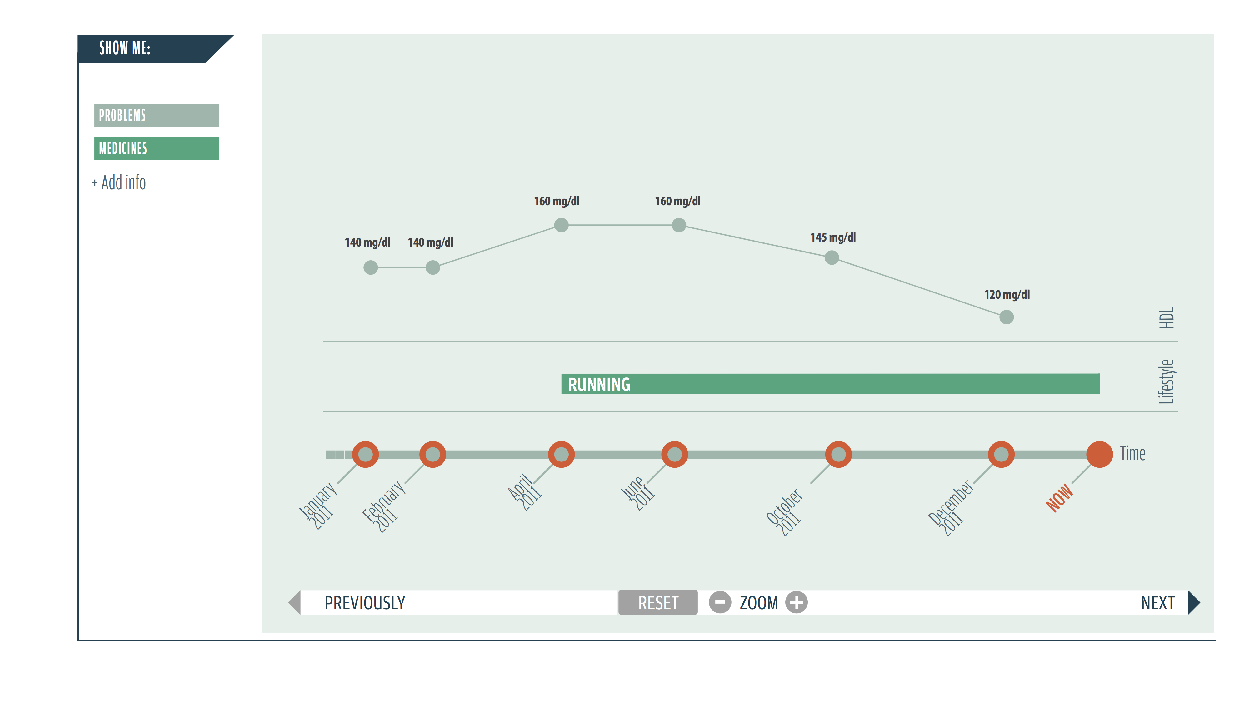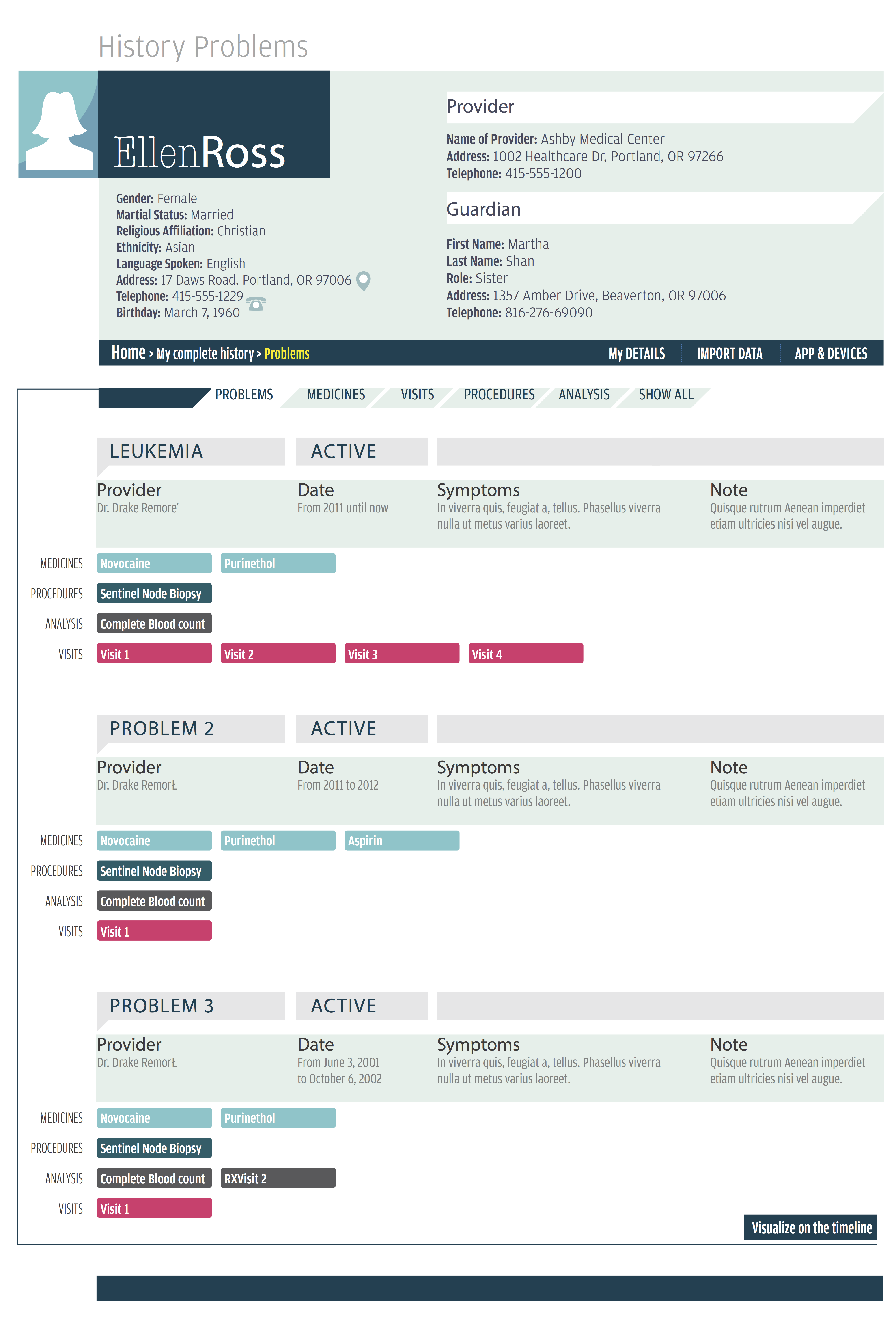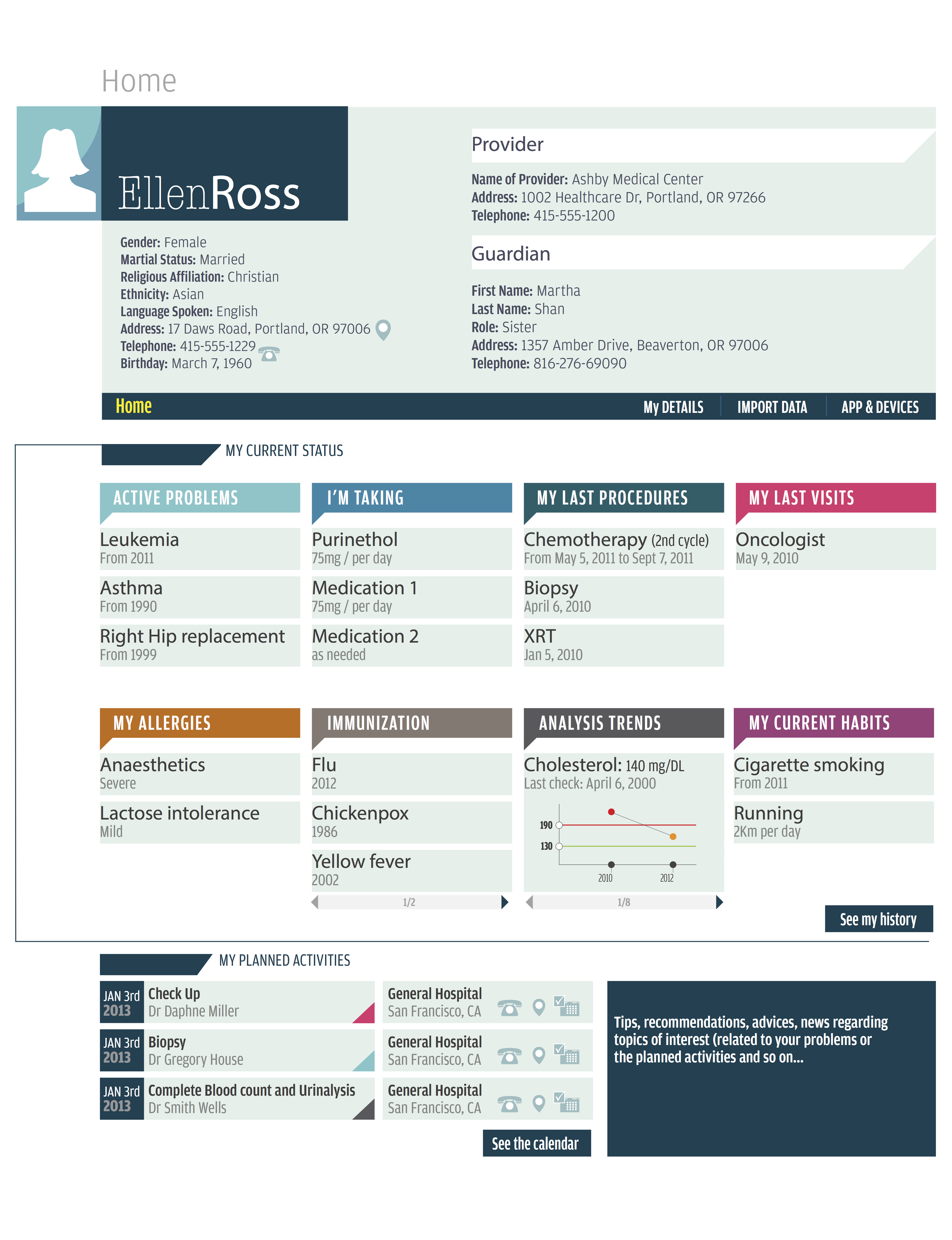 Our concept is based on the notion of trajectory of care, showing the past-present-future division in all the key elements. It is composed by two main tools: the paper view and the digital view.