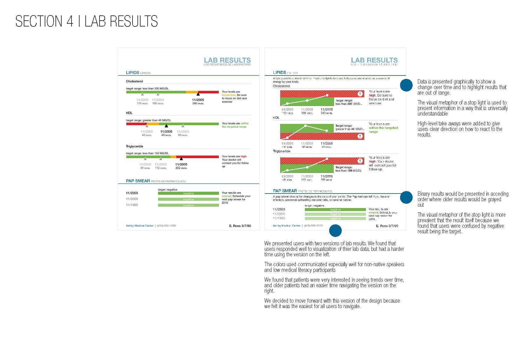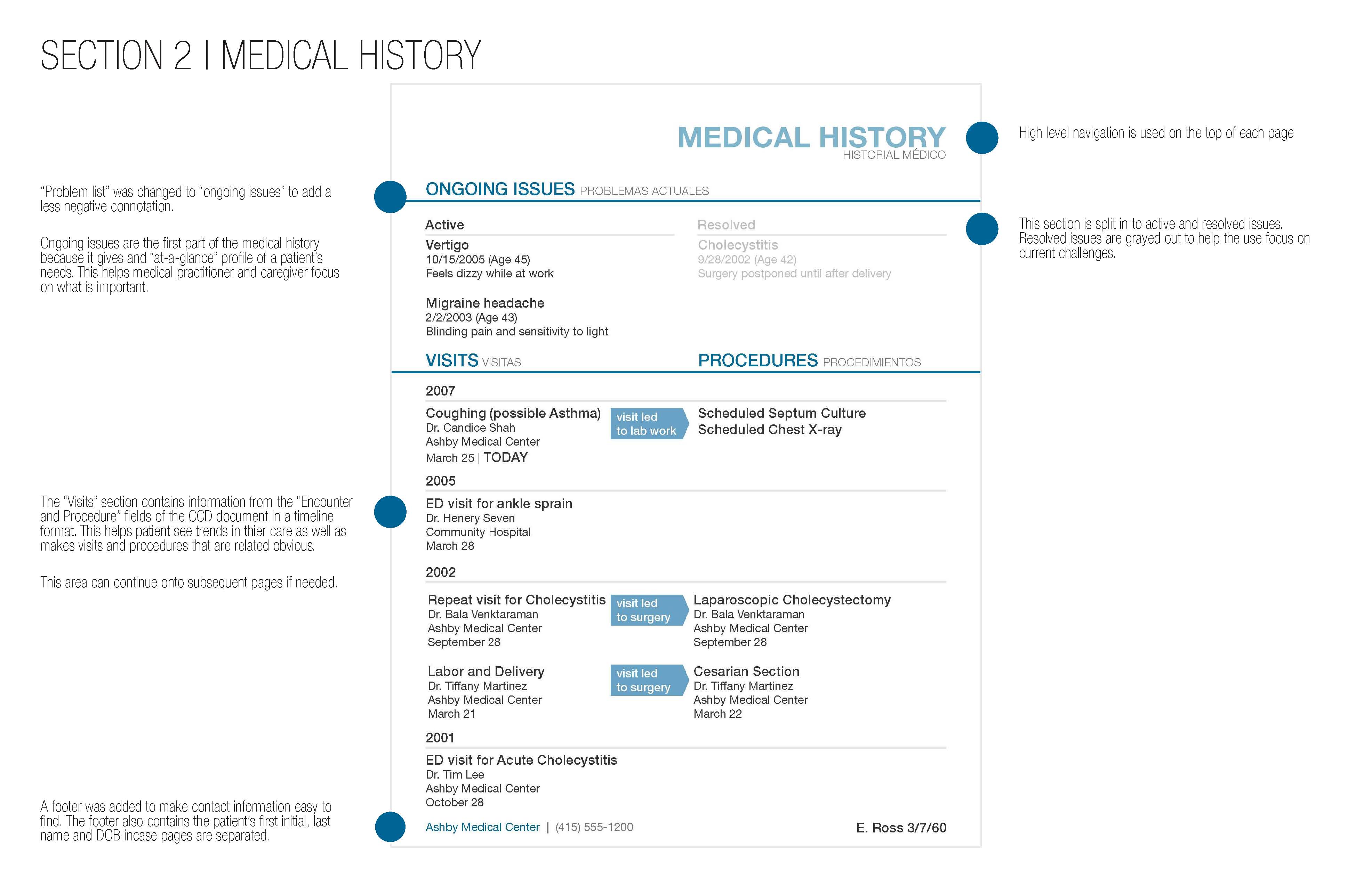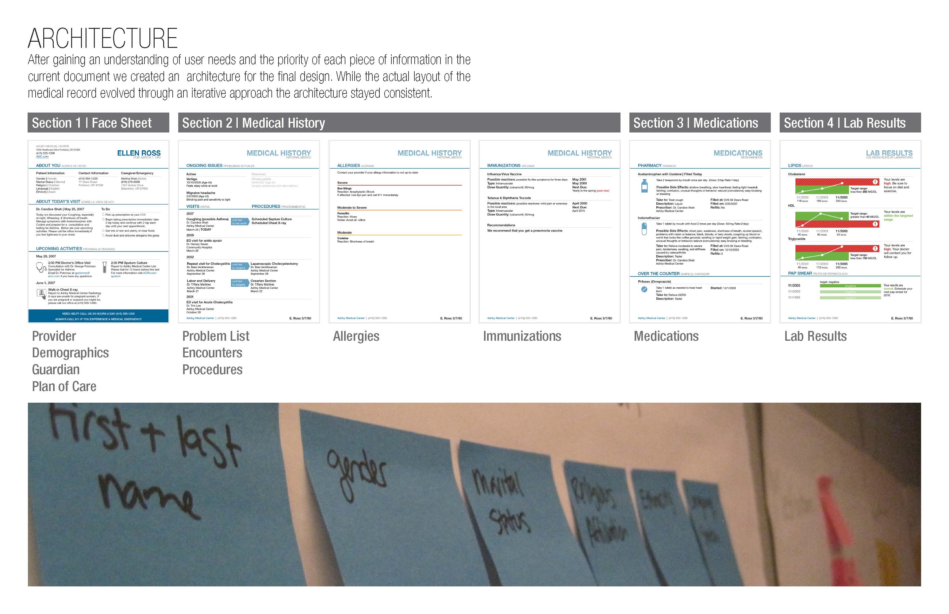 We took a research driven approach to designing a print medical record that is easy to use and navigate. We balanced the needs of all pertinent user groups to create a design that is simple, clean, and informative.