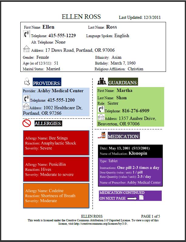 This design takes advantage of color and uses a tile format to make information easy to find. It includes a timeline to provide the reader with a quick overview and uses images to make it more accessible to those who have problems with the text.