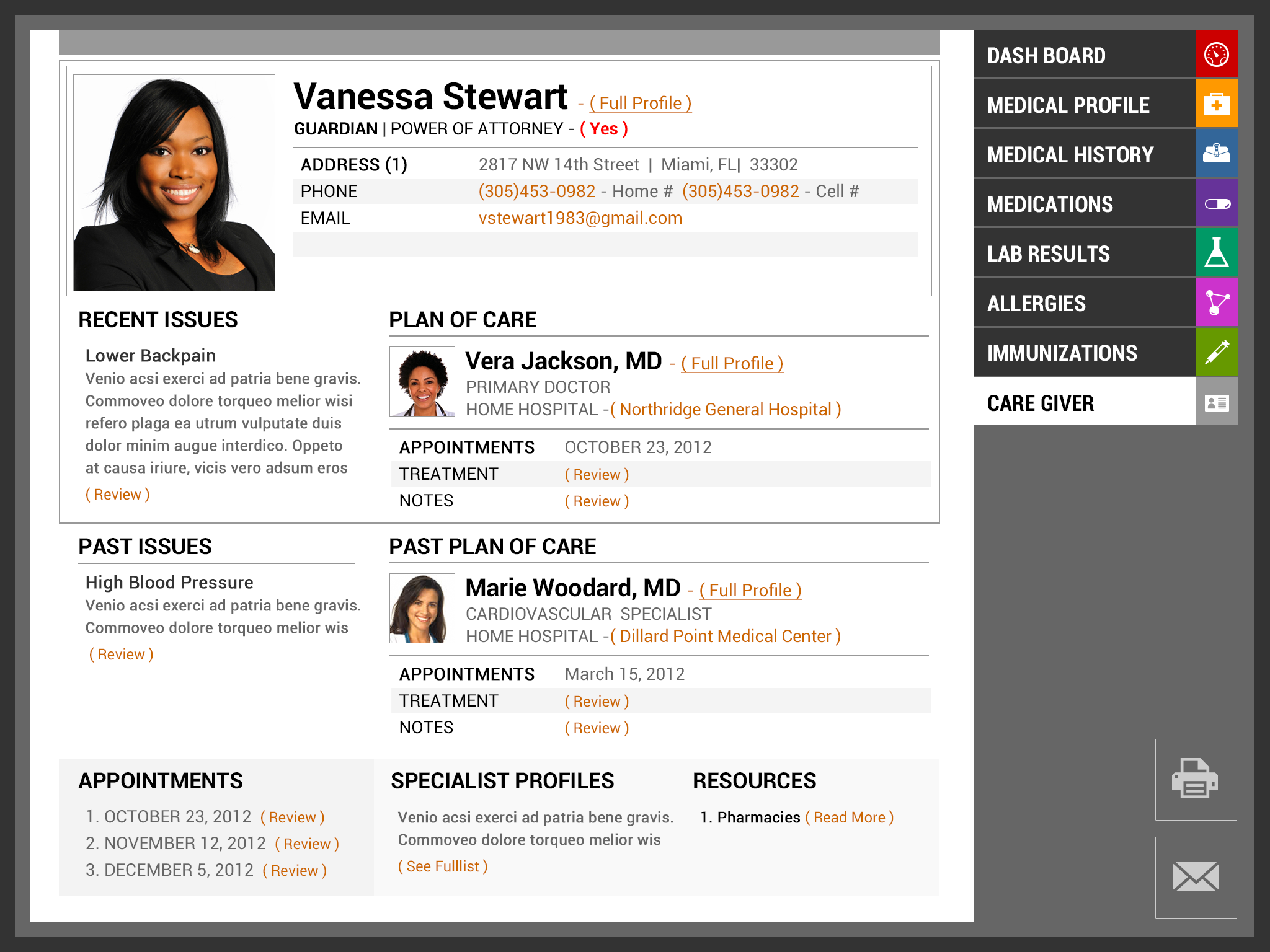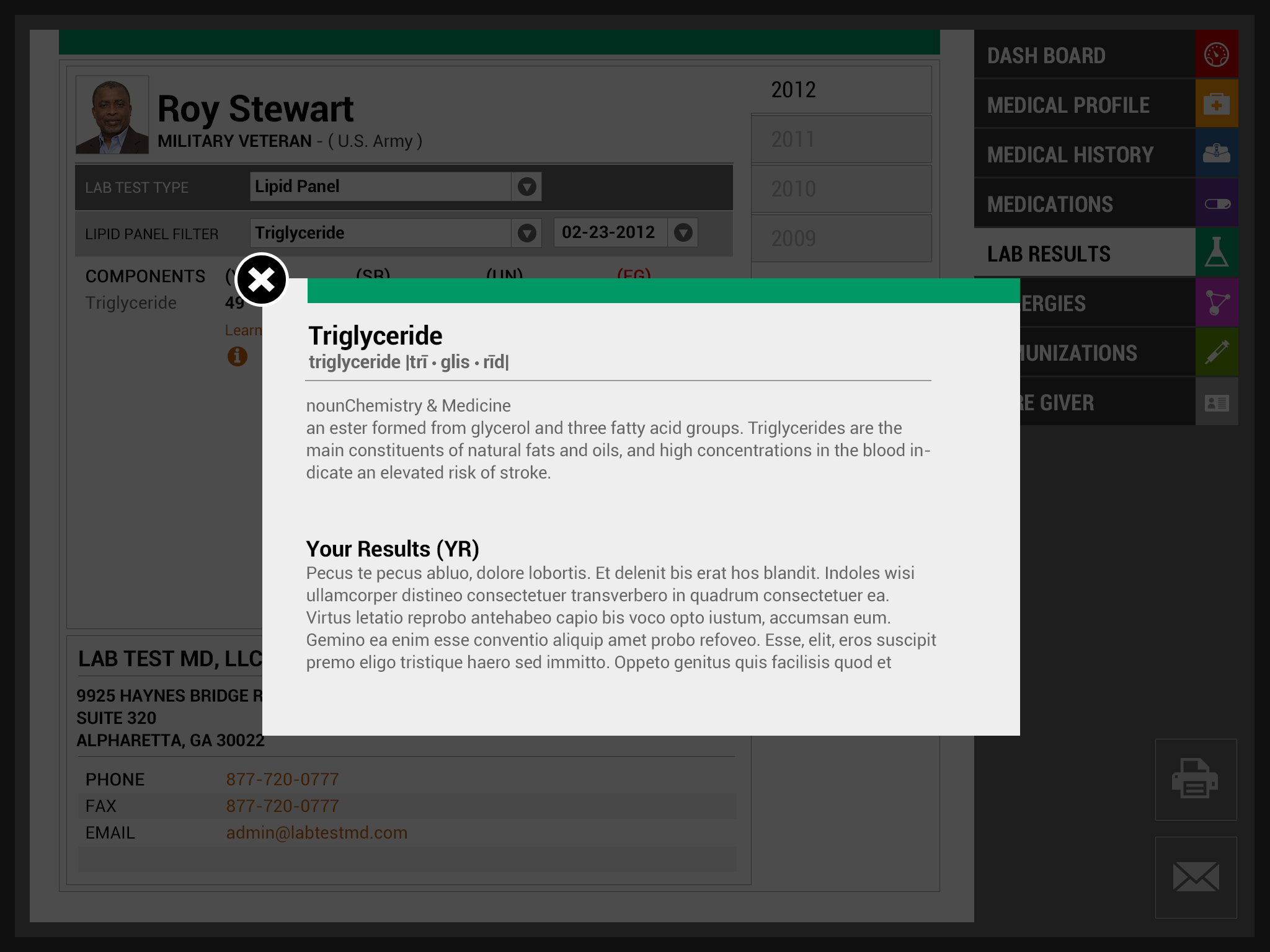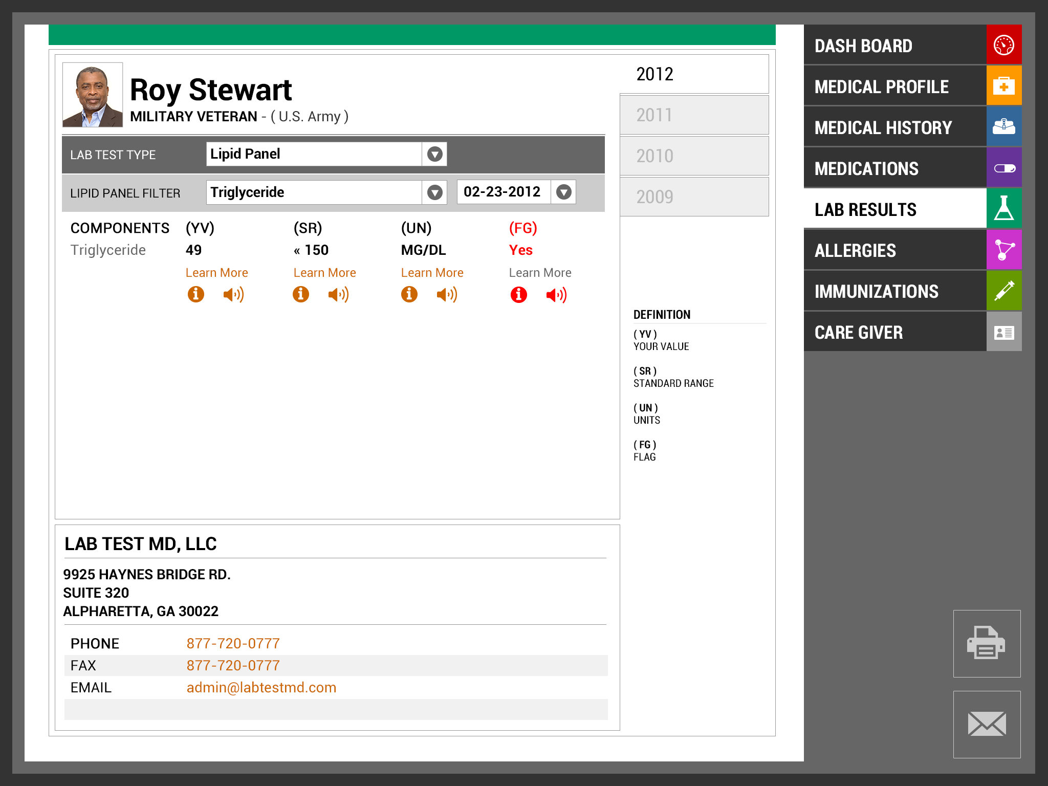 Team EmpowerVet is excited to present our vision of the redesigned VA Patient Health care record. Our focus in this project was centered on information design and layout: how do we redesign the information to be relevant across age group, various injuries/ailments, long term conditions, and keep it relevant for an entire lifetime. Healthcare today can be an emotional roller coaster for all patients, including our Vets, and their caregivers. It should not require super sleuth skills to decipher their own healthcare information. Our ultimate goal is the design and layout of the information for the ease of use of the patient, the caregiver and the medical professional in that order. We also took into account those who have impaired hearing or reading, as well as those where English is a second language (in fact the caregiver may be the one where English is a second language). We hope that our work will be utilized to improve healthcare for all patients, starting with our US Vets.